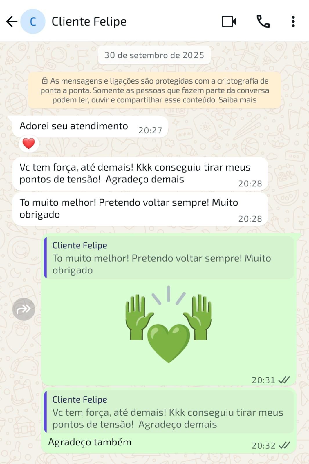 Eu leio suas tensões, identifico bloqueios e aplico exatamente o que você precisa naquele momento — com técnica firme e escuta sensível.